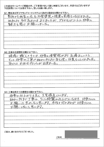 お客様に施工後の感想をインタビューさせていただきました。 | |