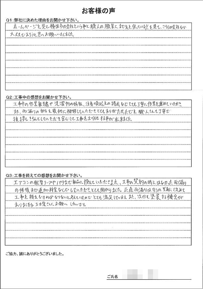 お客様に施工後の感想をインタビューさせていただきました。 | |