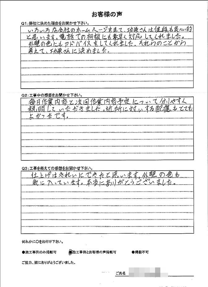 お客様に施工後の感想をインタビューさせていただきました。 | |