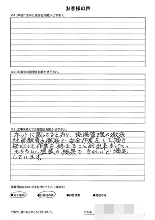 お客様に施工後の感想をインタビューさせていただきました。 | |