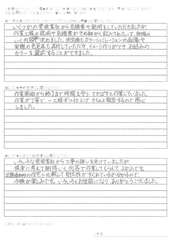 提案力の違いと日本ペイントのダイヤモンドコートの商材の品質にお施主様も安心して工事のご依頼を頂く事となりました。
