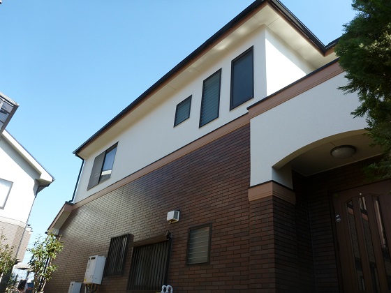 屋根は遮熱塗料サーモアイ4Fで4工程通気工法。2階部分はダイヤモンドコートプレーンシステム。 |