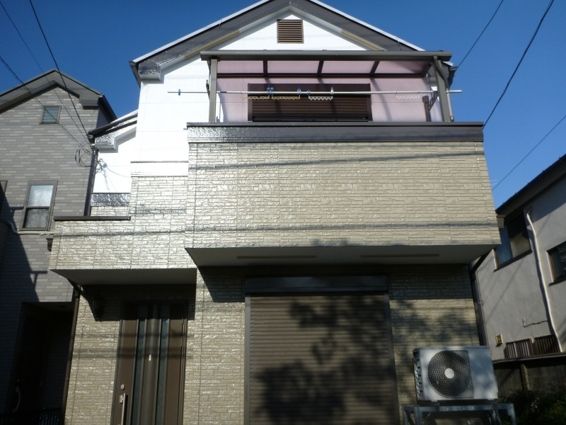 築年数に併用した経年劣化の進行が確認できました。屋根・外壁の表面塗膜の防水機能の低下、サイディング目地のシーリングの劣化の進行も含めてメンテナンスは不可欠です。お施主様のご要望となる「安心できる高品質」をお届けするべく、ダイヤモンドコートプランをお勧めいたしました。劣化の進行が著しい屋根は目止めを含む4工程通気工法。2F部分の外壁は軒天場の出幅が60㎝以下となりますので、特に紫外線の影響を強く受けることから、耐用年数の保持を目的としたUVカットクリヤーコーテイングで品質施工をご提案させて頂きました。1F部分は意匠系窯業サイディングのメンテナンスの王道を走る、日本ペイントのUVプロテクトクリヤーでのご提案となります。拘りの品質施工は1工程増加の3工程。付帯部分はファイン4Fセラミックで3工程。生粋なる塗装店の品質施工です。 |