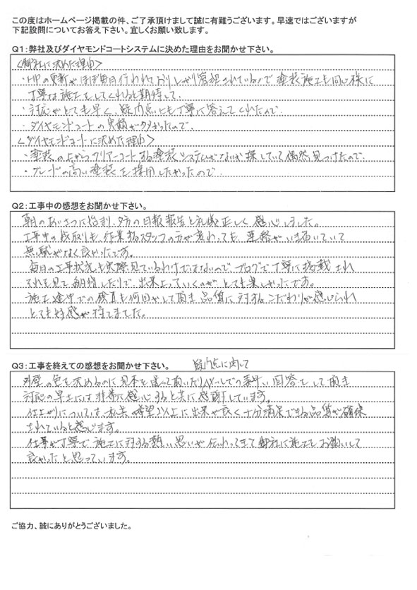 お客様に施工後の感想をインタビューさせていただきました。 | |