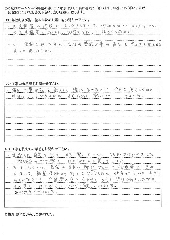 お客様に施工後の感想をインタビューさせていただきました。 | |