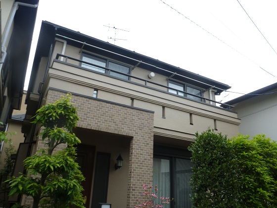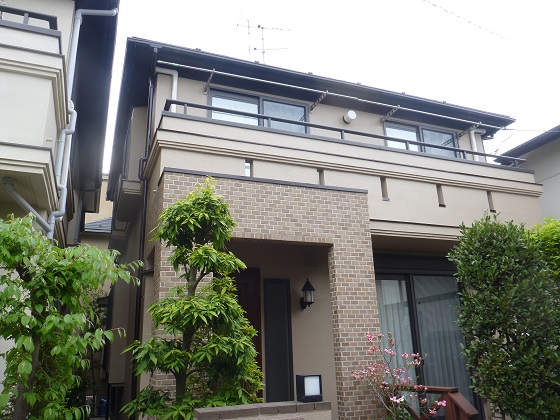 三井ファインコートの戸建住宅です。カルテットで近隣2件を施工をさせて頂きましたが、工事完了後、お施主様からご紹介からご依頼を頂きました。カルテットの十八番となるファインコートは強靭な塗膜形成がテーマの一つとなります。ファインコートの塗り替えの場合、仕上げの色をあまり変えない方がおおい傾向にありますので、提案色も候補がありますので、色決めなどのご提案は比較的容易です。お施主様のご要望はなるべく耐用年数の長い塗料で塗り替えを検討されておりましたので、ダイヤモンドコートをお勧めいたしました。 |