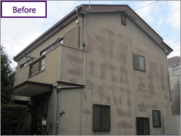 賃施工前は汚れの目立つ外壁でしたので、汚れが付着しにくいダイヤモンドコートをおすすめしました。深めのグリーンを基調に全体の色バランスも落ち着いた雰囲気に仕上がりました。住宅が密集する近隣でもひときわ目立つ明るく上品な外観で、ご近隣でも「イメージが変わった」「見違えた」など好評で、施主様に喜んでいただけました。 |