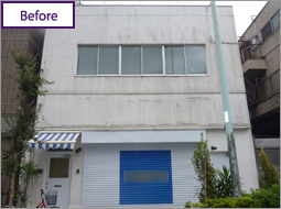 また、サービス工事になりますが、看板撤去後の補修後が必ず出てしまうと思い、下塗りで鎖骨ローラーで下地を調整致しました。社長様には工事中もさまざまな面でご協力をいただき、大変助かりました。4日間でしたが、無事工事も完了し、渋谷区にもカルテットの作品が出来たことを誇りに思っています。