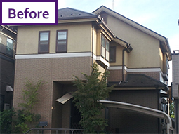 2階部分はダイヤモンドコートで、1階部分のサイディングにはUVプロテクトクリヤーを使い、それぞれ外壁の質感に合わせた紫外線対策を行いました。カラープランでは、サンプル写真だけではなく、実際の塗り見本を作成して、ご満足いただけたと思います。 |