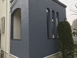 リシン面とジョリパッド面(アクセント)の色分けとアクセント部分の色決めに苦労されていました。