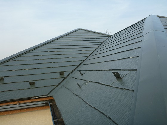 屋根は遮熱塗料サーモアイ4Fで4工程通気工法。2階部分はダイヤモンドコートプレーンシステム。 |
