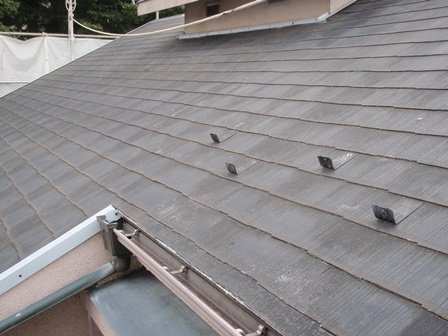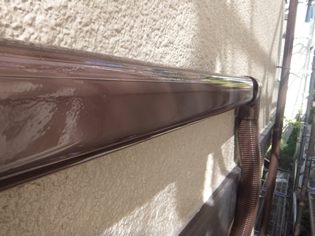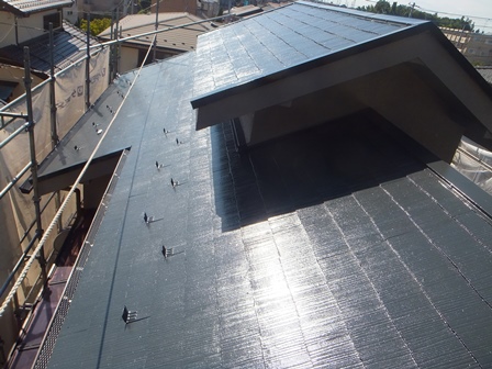 前回、屋根はあまり良くなかったのか、剥がれが発生しておりましたので、なぜ剥がれるのかのメカニズムをご説明させて頂き、剥がれないようにする為の施工方法の説明にご納得下さってご依頼をお受けいたしました。落ち葉が多い立地でしたので、雨樋に落ち葉除けネットの設置を行ないました。